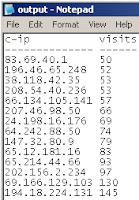 This will place the IP address and count (or hits) into a file named output.txt – this command uses the as “string” to name a column and sort it. You’ll get something like the image at left (using data that was provided here)