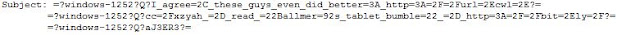 It seemed possible that Ping.Fm was causing this issue somehow – really, the email message I sent was simply text in the subject line. Right? actually, wrong. I used Gmail to send this message and when I opened the message and selected “Show Original” in Gmail – I was able to see what the raw subject line of the message was looking like. Here’s how Gmail sent it: