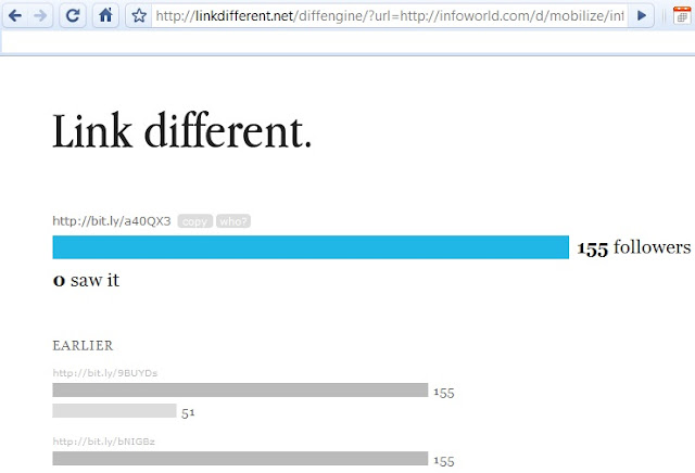 Big Twitter user? If you are, then one of the more commons ways you get the word out about a topic is by way of a link. Most of these links are shortened (140 characters, after all) by using URL shorteners such as bit.ly, or 3.ly. What is often the case is that most of your followers have already seen the link your attempting to share and things might get a bit redundant if you give something your followers have already seen. So, enter Link Different (you’ll need to login with your Twitter account – no account spam was seen in my tests). Link Different will scour your friends list and return the number of your followers that have seen the link your about to post. You’ll get a bit.ly link to copy in the process as well. Link Different is best used as a BookMarklet in your favorite browser for quick access. If you tweet allot, this information can seriously improve your ability to target followers. Extra points if you notice the font style and homage here. Guess in the comments!