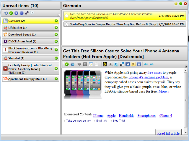Desktop Google Reader – If you prefer to read your RSS items via a Windows Application – the Desktop Google Reader may be for you. This free application supports a stylized interface, popup notifications of new items, inline rendering of pages (and even doing that with Chrome instead of IE!), and a number of external services.