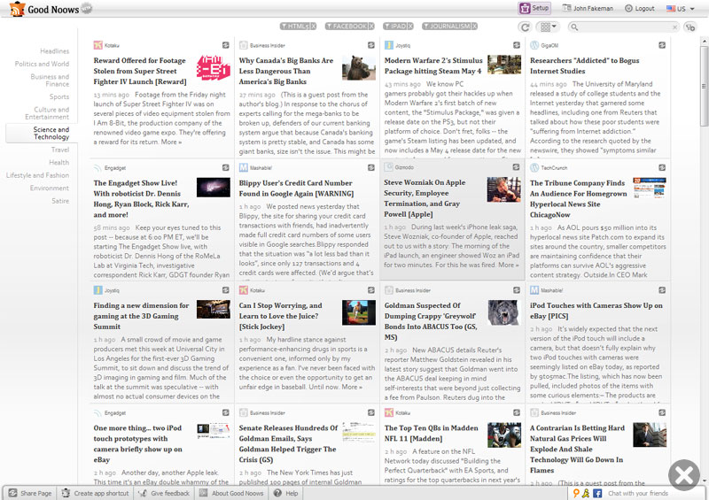 Good Noows – This great, free Web Application hooks directly into Google Reader and provides you with a very different take on reading your RSS feeds. I wasn’t super-impressed with it’s ability to integrate with Google Reader, but I expect this service will improve over time. You have to take a look at the display style to better appreciate if this is right for you.