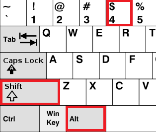 You’ll see “Type your hotkey” – here is where you type SHIFT+ALT+4. You’ll see on the screen that it says SHIFT+ALT+$ – this is what we’ll fix in the registry.
