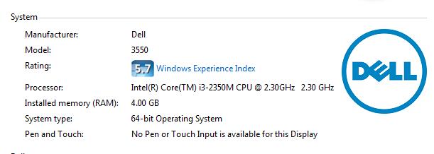 This laptop, like others that I’ve seen from Dell, didn’t do much to impress me with speed. The overall feel of the machine is sluggish at best, and downright slow at worst. I expect more from the base install of a new laptop from any manufacturer. Perhaps this is just a perception thing, but other – older – laptops appear faster. With a 5.7 rating, I think the feeling of this machine should be more snappy.