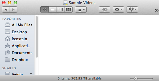 This is one that I see will be a huge issue for Bitcasa. Since the data they expose (in the user’s folder) is all being streamed to the user – the ability to connect to Bitcasa’s servers reliably on consistent basis to get at the data is going to be essential. Bitcasa needs a rock-solid re-connection process that is missing from this current beta I’m using. What I saw happen more than once was when a connection on my Mac was restored – trying to access Bitcasa data yielded an empty finder window (see below).