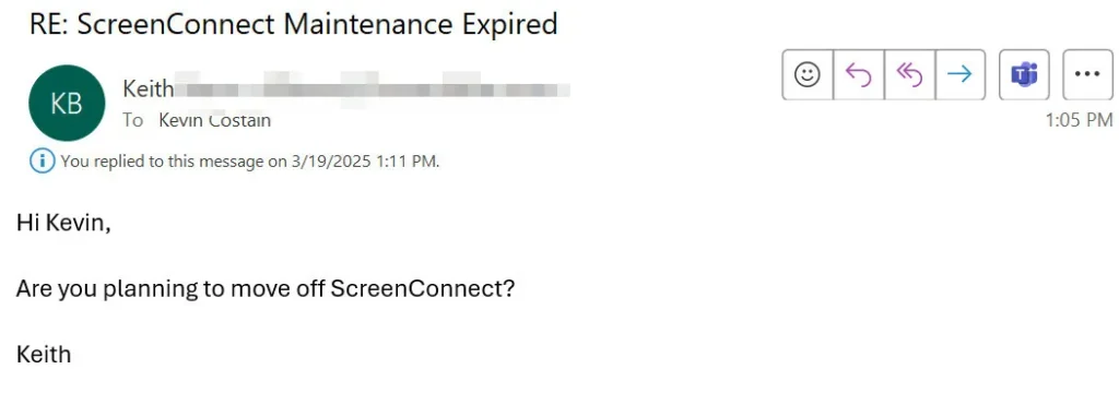 Our migration off Screenconnect continues. The landscape of these tools seems to narrow more and more. Is there a Canadian company that can build a remote access tool? Be sure to let me know if you’re running an instance of the software.