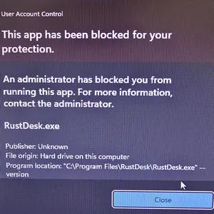 Install again as administrator and start the service. Once that’s done, RustDesk should be fine on future reboots. This is until the certificate can be re-issued and a new version of RustDesk can be released.